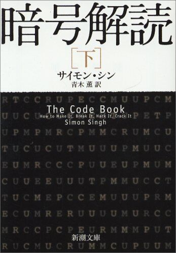 暗号解読 下巻 (新潮文庫 シ 37-3)(2007/06/28)サイモン シン商品詳細を見る 【一言感想】 面白い、面白いよ!!でも訳判らないところも多いよ!!(苦笑) 解読に関わった人たちのエピソードのところは本当に面白いし、歴史的なネタも多いのでそのあたりは…